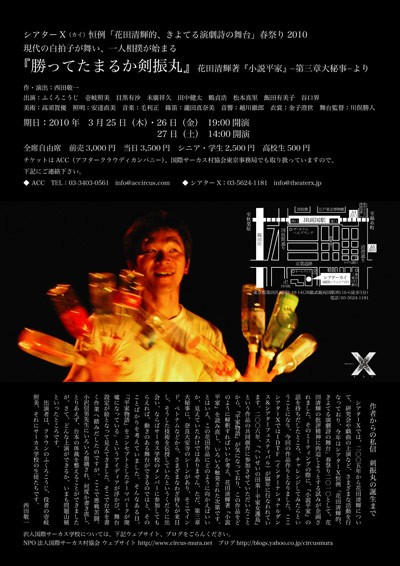 | 問い合わせ先 | シアターX tel 03-5624-1181 fax 03-5624-1155 e-mail info@theaterx.jp ACC tel 03-3403-0561 e-mail info@accircus.com |
