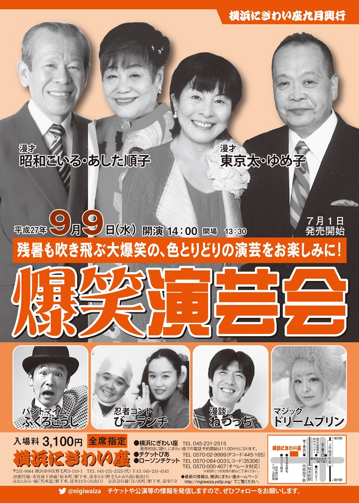 | チケット購入 | 横浜にぎわい座(チケット専用045-231-2515) Pコード : 445-165 Lコード : 35306 7月1日発売開始 |