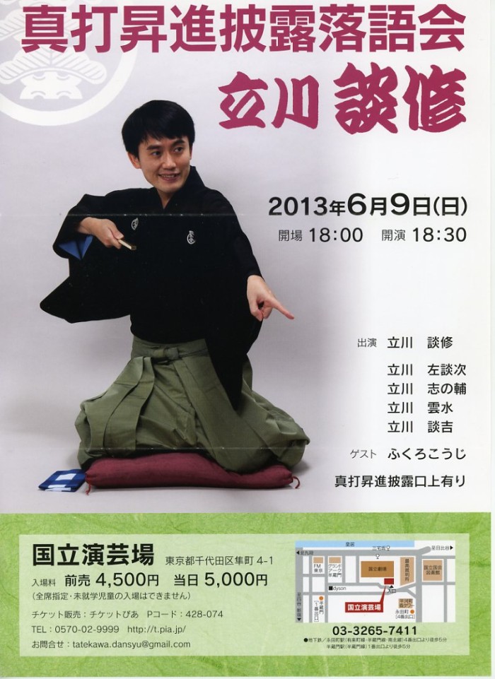 生前大変お世話になった立川談志師匠のお弟子さんの立川談修さんがこの4月にめでたく真打ちに昇進されました。
